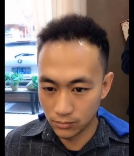 这位男士头发确实有明显脱发现象,头顶和发际线位置最严重,这是大多数人脱发的通病,为了改变这一形象,给做的"烟花"烫发,在把两侧头发剪短,使头发最多的位置变最少,头发少的位置烫多,我们一起来看看效果吧~
