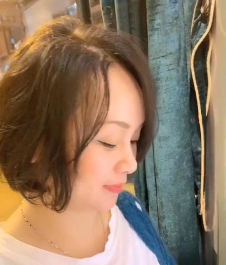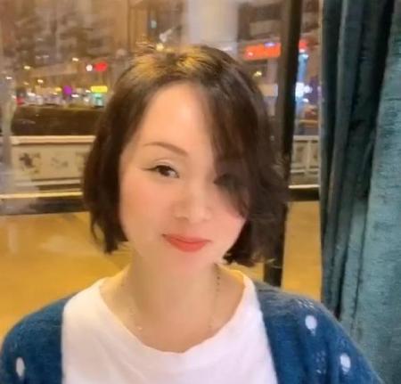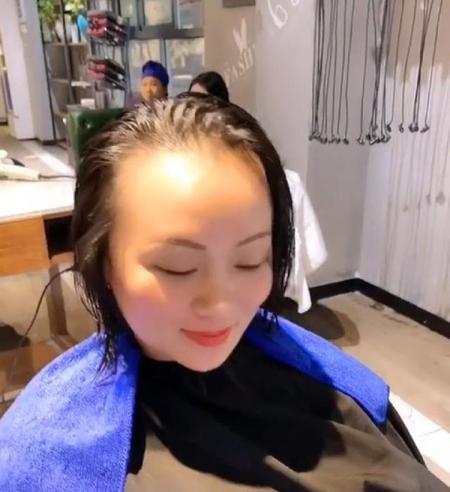 这是烫发后的效果,裁剪出刘海烫后,用来遮盖头发少的位置,非常的年轻时尚,要比之前没做发型变化的超大。