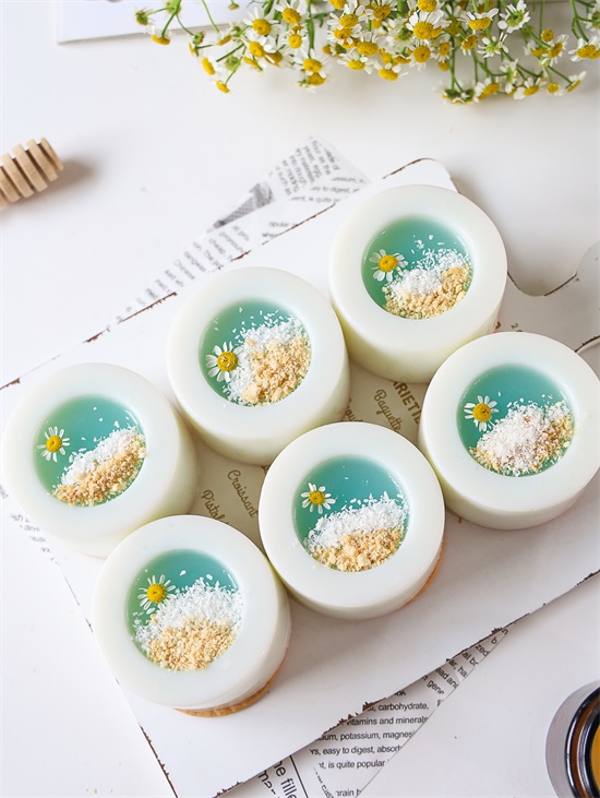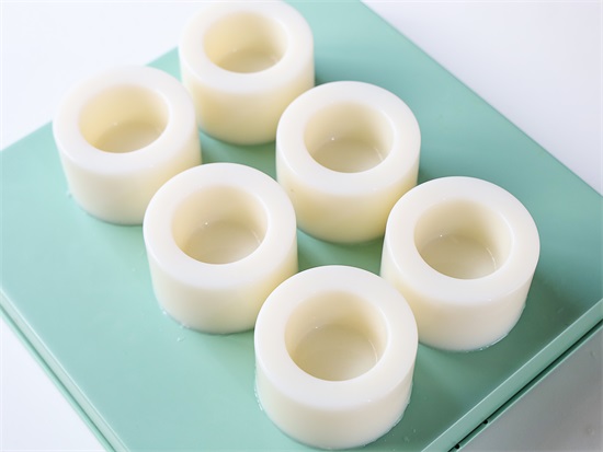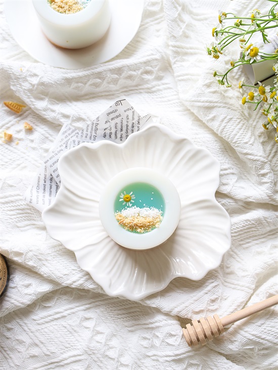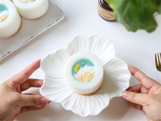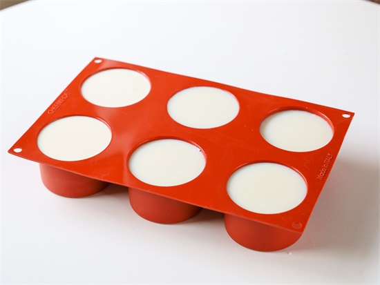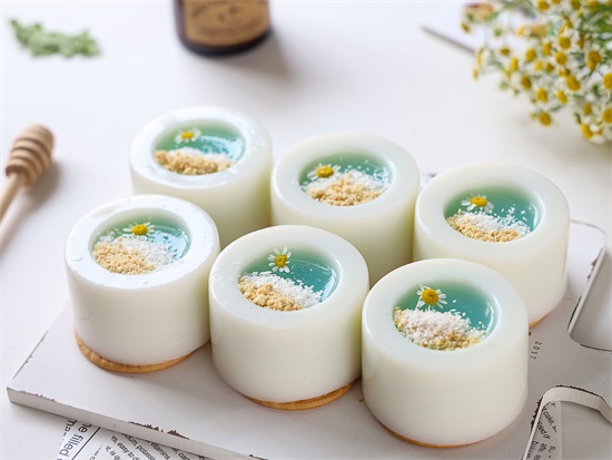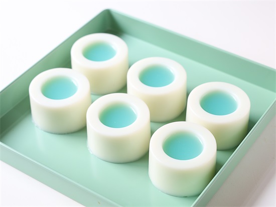 4.将冷藏好的奶冻取出,轻轻抖抖再捏捏模具,就可以轻松脱模