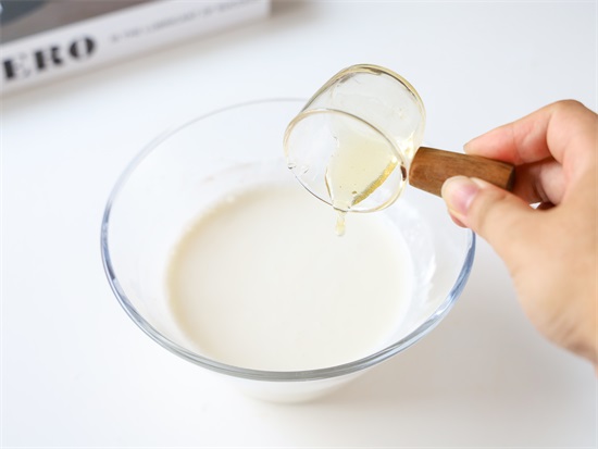 3.将做好的牛奶液倒入模具,送入冰箱冷藏3小时至完全凝固