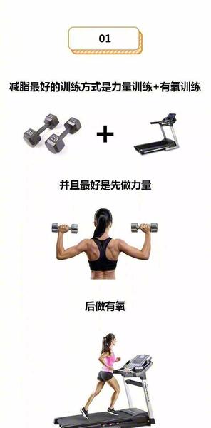 ①先做一段时间的有氧,把心肺能力提高一下,然后开始力量训练+有氧运动的方式来减脂。这样既可以通过重训来紧致塑造局部,也可以更有效率的全身减脂。