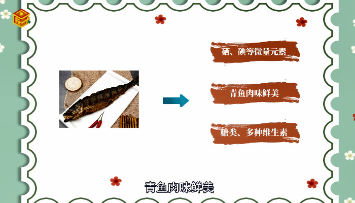 青鱼又叫乌鲭、青鲩、乌青、溪鱼,是中国传统的四大淡水养殖鱼类之一。它含有糖类、多种维生素、锌等矿物质,以及丰富的硒、碘等微量元素。青鱼肉味鲜美,被视为上等食用鱼类,具有较高的经济价值与食用价值。