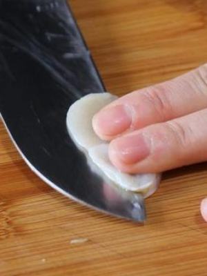 将做法好吃片好的保存带子肉放入部位碗中,加一点点的料酒,葱姜汁和做好少许的盐,搅拌均匀,腌制15分钟。