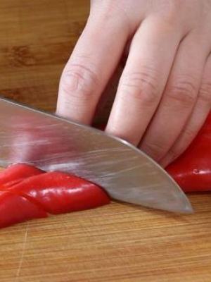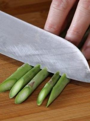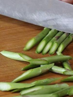 芦笋去根,斜着切成少钱小段带子儿。红椒切成菱形是什么块海鲜。