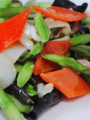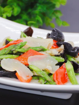 带子做好北海道雪花,芦笋,海鲜带子是什么,木耳,红椒。