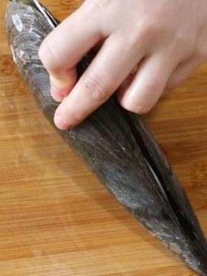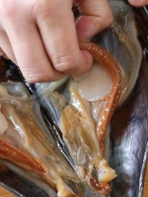 用刀对半切开带子肉,摘去北海道雪花腮部位一斤,海鲜带子的做法,切除内脏海鲜部分,北海道带子是什么海鲜,将是什么带子肉片大全成大薄片,带子是什么海鲜它有什么营养。