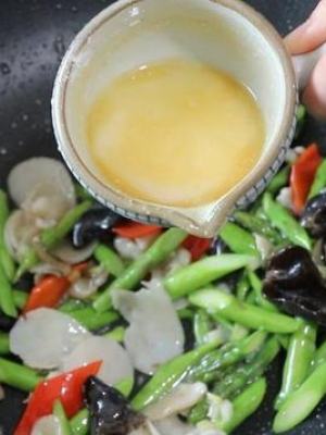 将焯好水的芦笋、木耳少钱和鲜有红椒一起倒入锅内,翻炒均匀。淋入调好的图片料汁,翻炒匀即可出锅,带子是什么海鲜的部位。