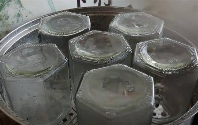 4.接下来准备几个腌茄子要用的玻璃瓶,瓶子洗干净后直接倒扣放在蒸屉上面蒸,这样做主要是为了给瓶子消毒、杀菌,盖上锅盖,大火蒸5分钟左右,然后将瓶子拿出来晾干水分,一会儿要用到。