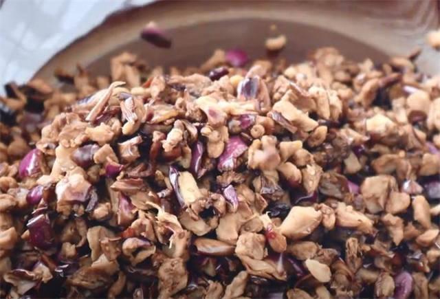 8.生姜晾干水分后先切成片,最后全部切成生姜末,腌茄子里面加生姜的话,也有防腐的作用。