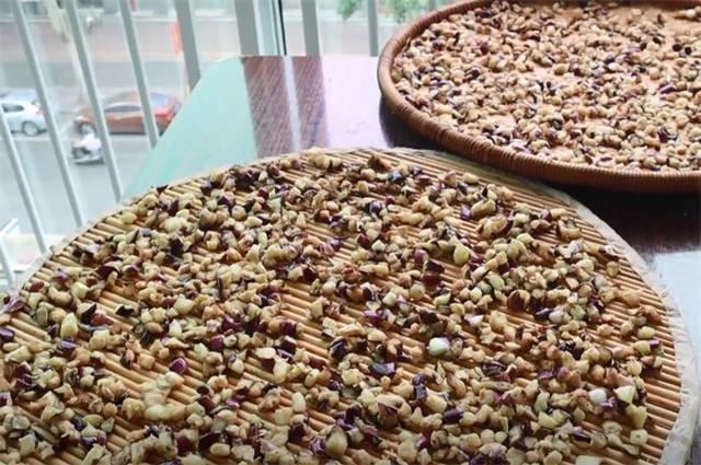 6.茄子挤干水分后倒在透气的工具上面,再将茄子均匀地摊开,放在阳台上面晾晒。