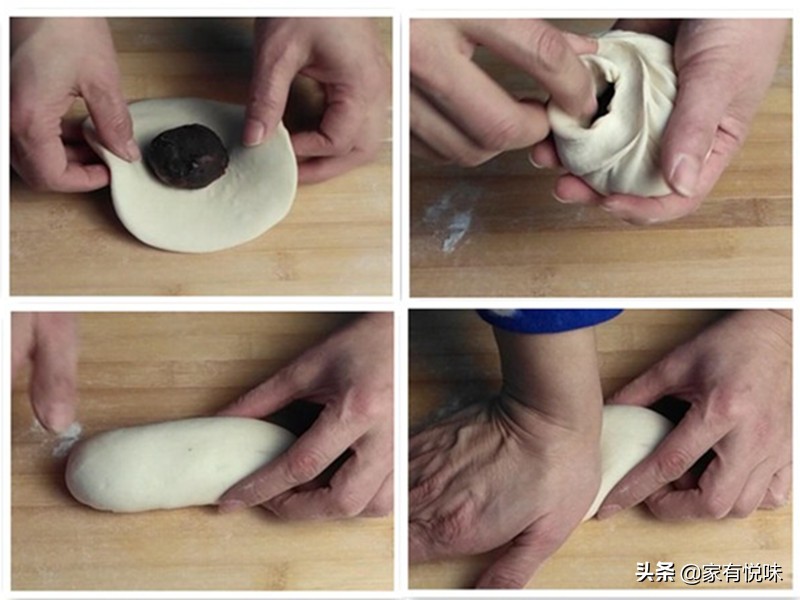 准备食材:面粉400克,酵母3克,清水200克,豆沙馅适量。