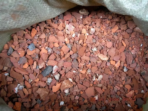 红砖就是盖房子用的红色砖头,用红泥土或者黄泥土烧制而成。砖头上布满了无数的小气孔,一来透气性好,二来可以吸水保湿。用红砖头敲成碎渣,混入兰花植料代替一部分兰石,既能省钱,效果也好。