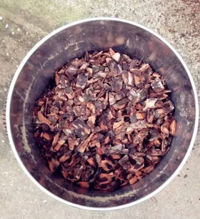 从松树林里捡来的树皮含有油脂、虫卵和杂物,不能直接使用。收集来的树皮要先在锅里煮30~40分钟,把里面的松树油脂煮出来,杀死虫卵和细菌。然后把松树皮装到塑料袋里,放在温暖的地方,发酵2~3个月后才可以用来养兰花。松树皮在植料中的比例可以多一些,通常占植料整体的40%~60%。
