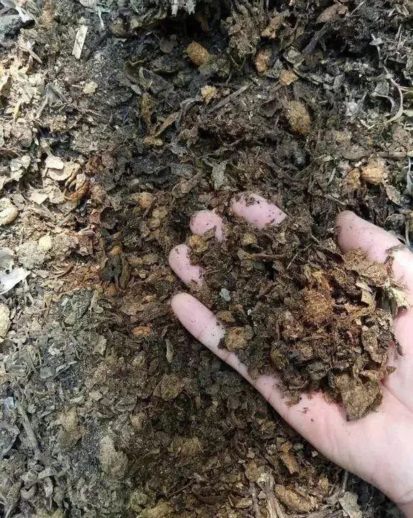 把塑料袋放在温暖的地方,发酵2~3个月,发酵好的花生壳会发黑,是轻轻一捏就粉碎的状态,然后就可以用来养兰花了。花生壳在兰花植料中的占比通常在10%~20%。