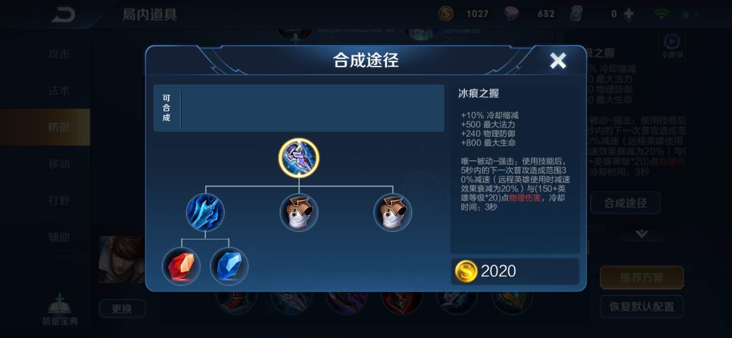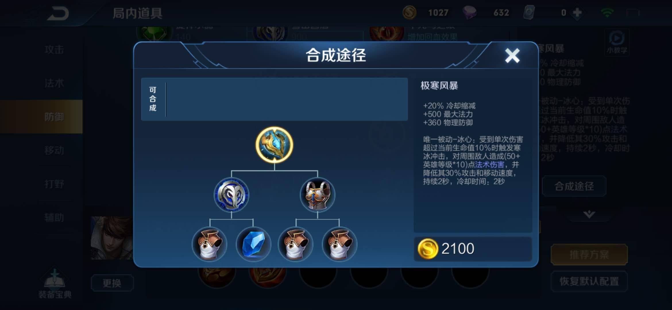 防御:雪山圆盾10%、极寒风暴20%、冰痕之握10%
