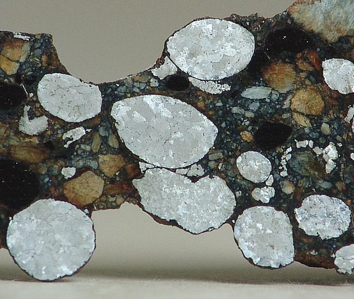 Gujba 碳质球粒陨石切面(可见金属颗粒)
