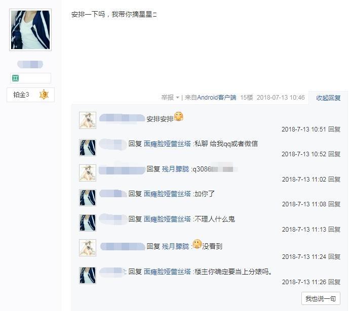 而另一派呢,调侃,嘲笑,逗比,调戏的不一而足,但这名女玩家却都回复,时不时的还会把自己的联系方式留下,而字里行间不知是不是乔游想歪了,总给人一种比较轻佻的感觉,也许这就是这篇贴子有那么多回复的原因把,古语云;“饱暖思淫欲”。乔游只能说人性也。
