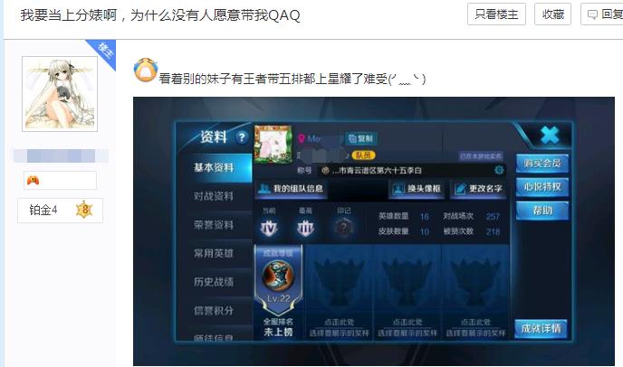 王者荣耀;美女玩家为上分甘当“上分婊”,网友;你懂上分婊吗