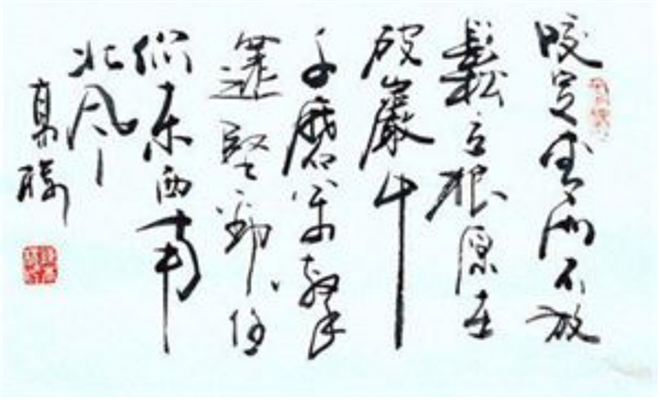 其二,他更是敢于打破书与画的界限,将一些画法笔触融进了书法之中,所写文字笔墨浓淡,笔画粗细,正斜分布,与当时书法所追求的截然相反。