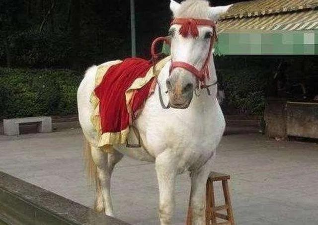 这匹白虽然是白色的,可是瘦弱不堪,根本无法承担起白龙马的拍摄任务,光从气势上就输了。
