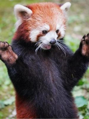 小熊猫的“举手投降”绝招,也是为了让自己显得更高大更不好惹,所以,当小熊猫对你举手的时候,记得收敛一下笑容,毕竟它在吃很认真的生气。
