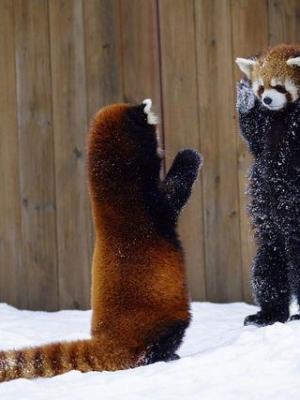 在动物园里玩雪的小熊猫,没有被偷猎一年级的危险