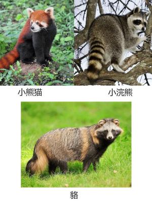 这三种动物都是食肉目,其中小熊猫科和浣熊科的关系要亲近一点,二者同属于鼬总科。而貉则是犬科貉属,只能算是远房亲戚。