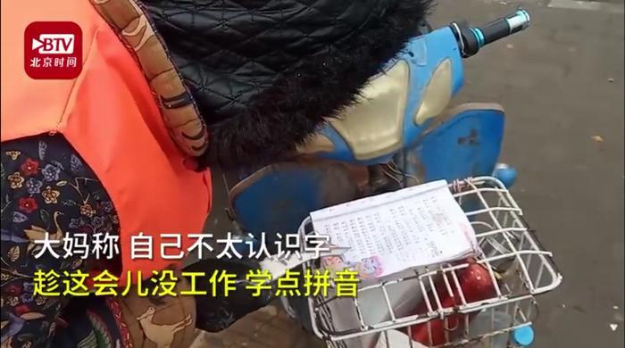 河南一位环卫工阿姨会在工作空闲的时候自学拼音,她说如果自己能多认几个字,平时就能多教孩子一点。