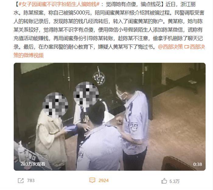 一个不识字的年轻女孩被骗钱后,在闺蜜的陪同下报了警,才发现骗子就是闺蜜。