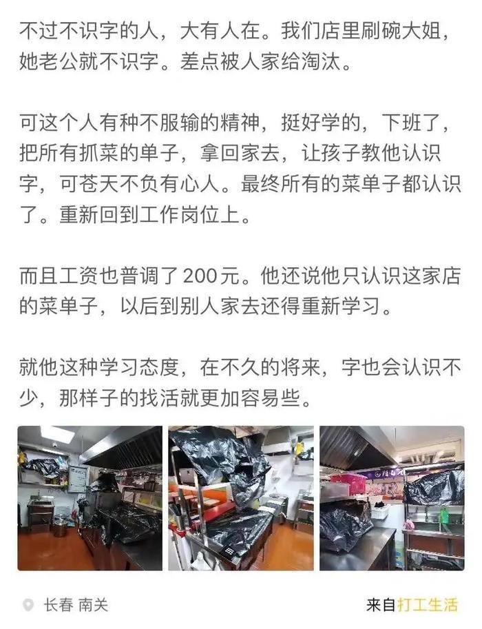 一位女服务员曾在社交平台上分享,自己的同事里就有一个不识字的抓菜工。
