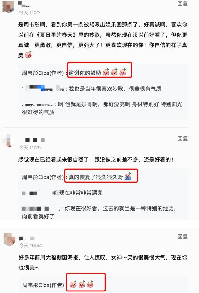 网友在看了她分享的经验之后也开始慢慢理解,评论区里也出现了一些温暖的评论,鼓励着周韦彤。