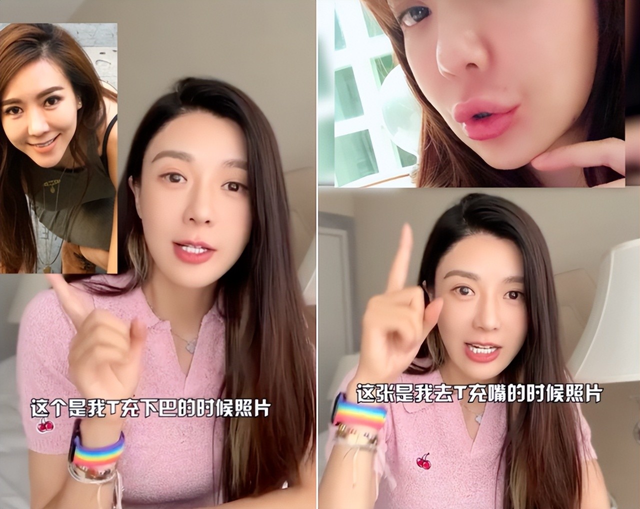 视频中,她也大方晒出自己在整容每个阶段的对比图。