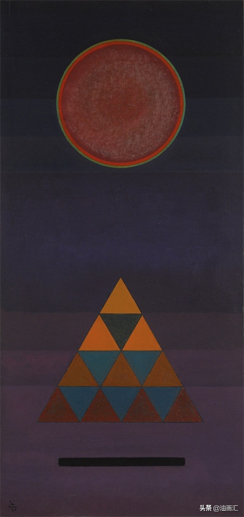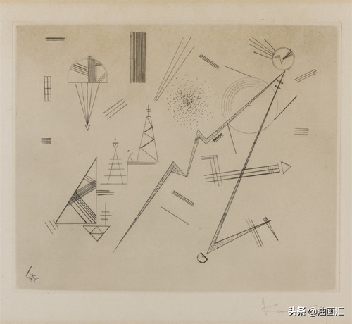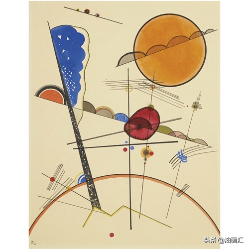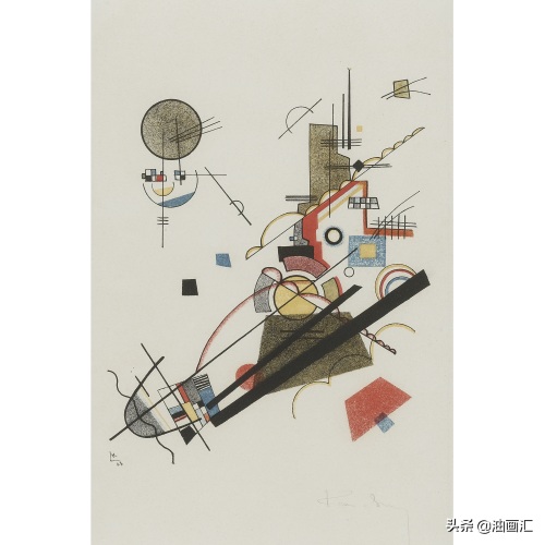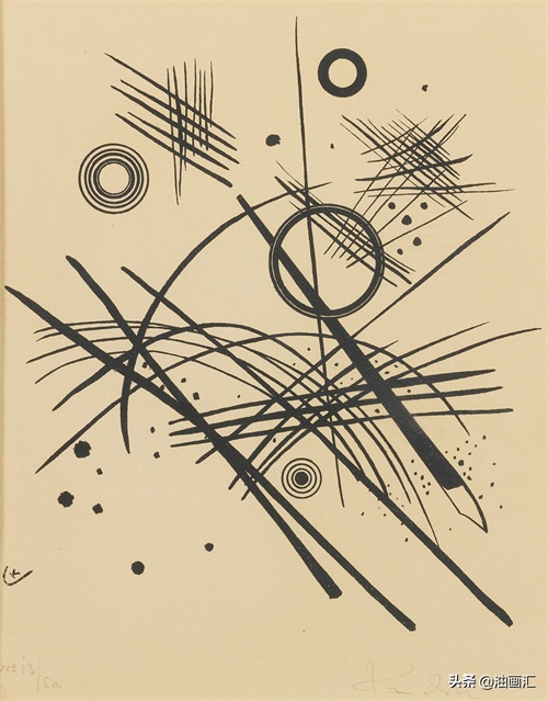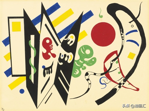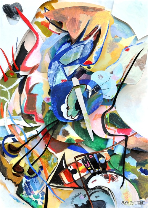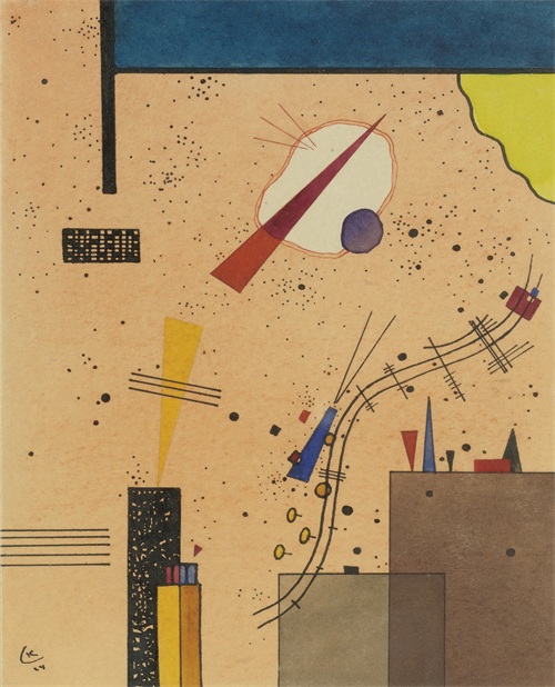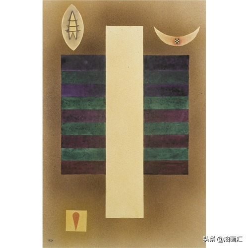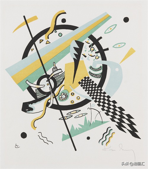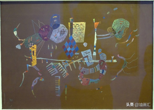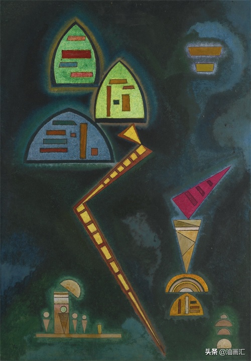 康定斯基的画作对于我们一般人来说太深奥了,对于我们这些初级欣赏者来说简直不要太狂野。他的色彩、线条、符号,如此错乱的纠缠和奔腾在画面上,这到底是要表达什么样的内涵,因为康定斯基年轻时学过钢琴,还是个的大提琴手,他写过一些美术理论,主要是讲点线面与色彩的构成模式。“抽象画对他来说,也是另一种抒发心灵语言的方式。”