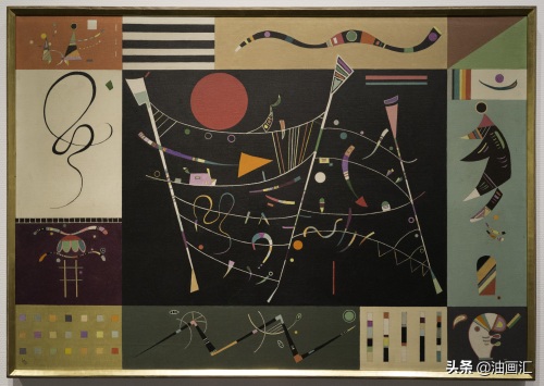 有人说康定斯基的作品“充满了韵律和动感”,“空间里疯狂波动的节奏”,“蒙太奇式的速度感”,“充满故事感的画面”,“形散神不散”,“其实康定斯基的画面里面充满了比喻和象征。”其实康定斯基的油画和五子棋有异曲同工之妙,都是关于点线面构成的艺术。