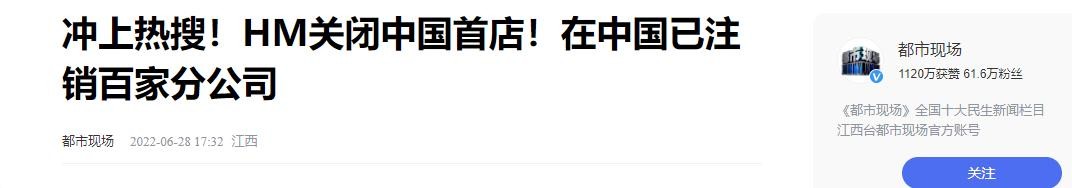 都市现场——冲上热搜!HM关闭中国首店!在中国已注销百家分公司