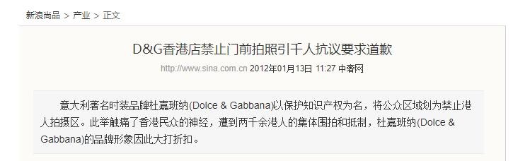中奢网——D&G香港店禁止门前拍照引千人抗议要求道歉