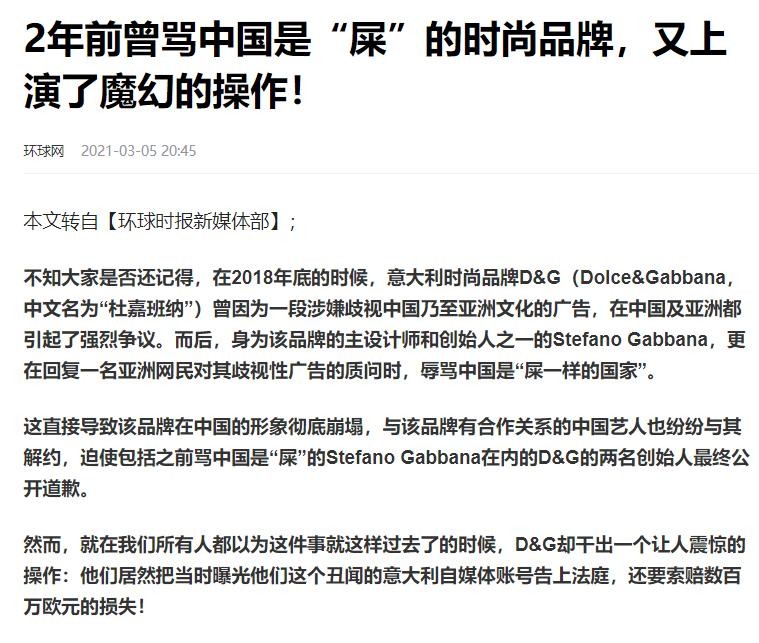 至于杜嘉班纳的最终下场也好不到哪里去,即便是创始人在出事的第一时间出面澄清。