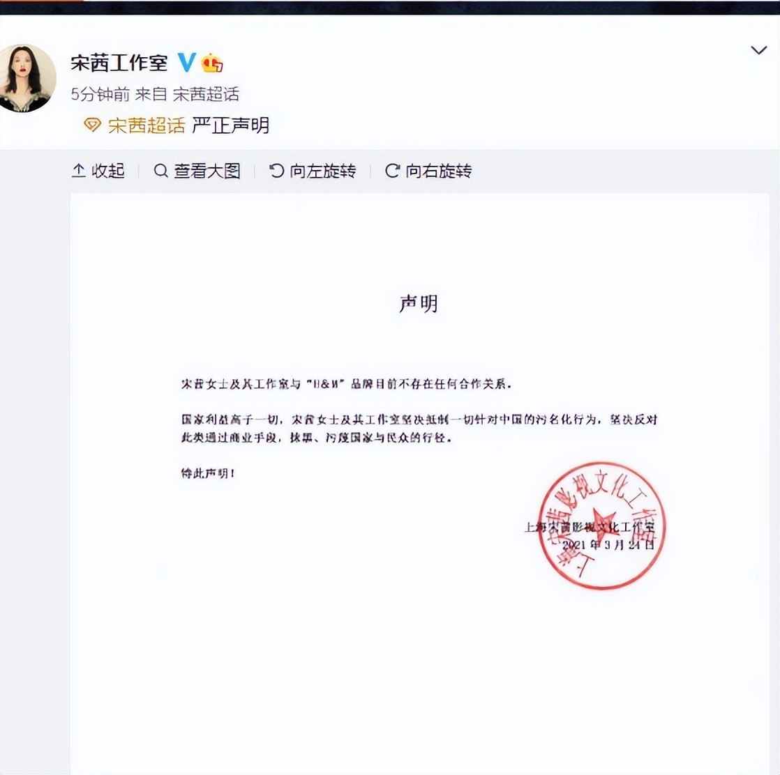 曾经和HM集团有过商业合作的黄轩和宋茜先后发出声明,。