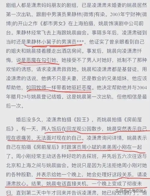 言辞凿凿地揭露姚晨婚内四次出轨,直指凌潇肃才是受害者。