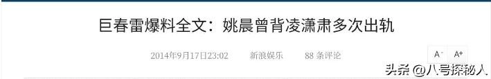 新浪娱乐——巨春雷爆料全文:姚晨曾背凌潇肃多次出轨