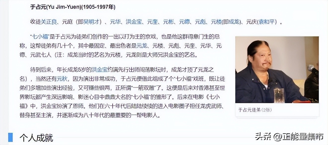 当年的于占元,是看哪位徒弟能吃苦耐劳,能在备受煎熬的日子里熬过来。熟悉于占元的应该都知道,他这一生在演艺圈事业中并没有获得太高的成就。可是他这一生却教出了一个又一个功夫巨星,例如洪金宝,成龙,元彪,元华,元秋。