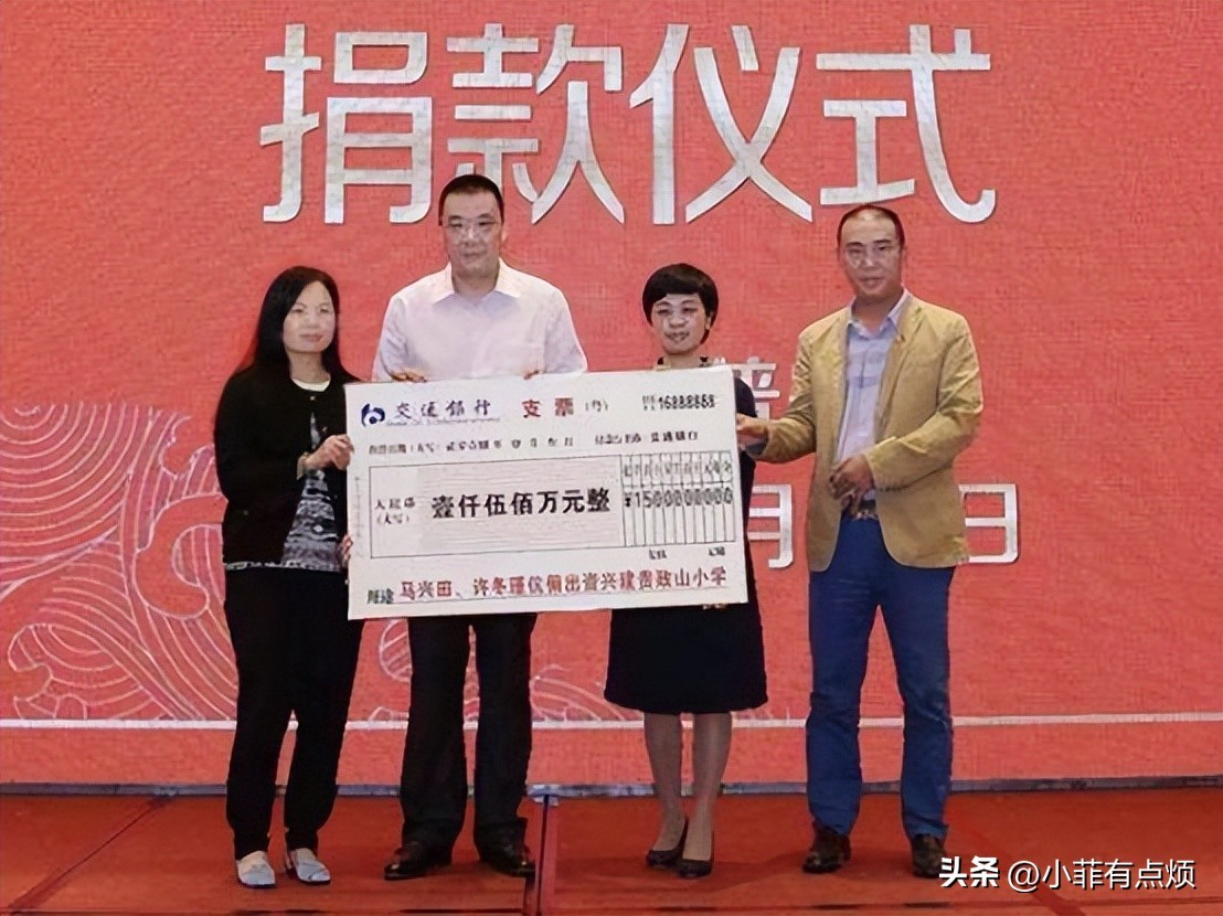 2018年4月3日,马兴田和夫人许冬瑾共同出资1500万兴建贵政山小学,捐款仪式上马兴田表示,愿意为普宁市的公益事业做出积极表率等等。