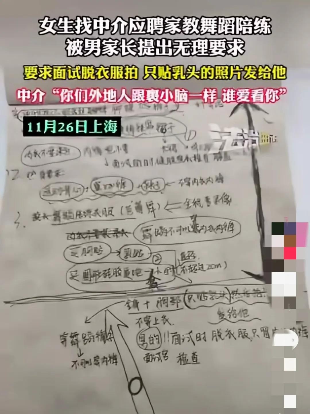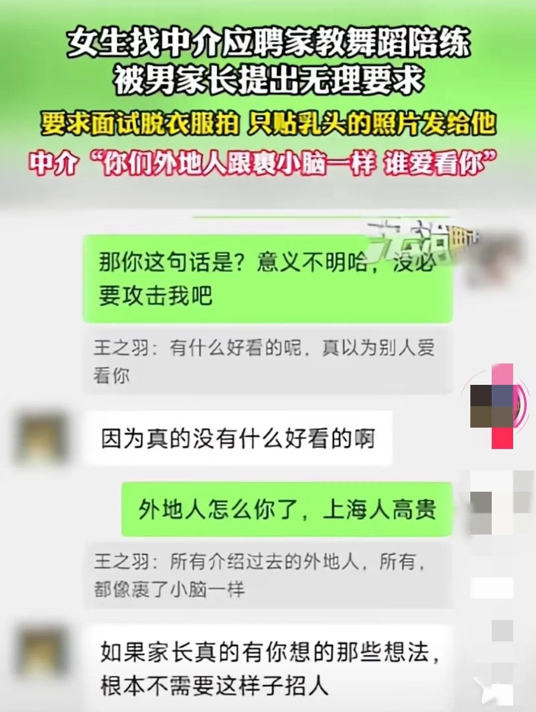 这几天,有个外地女孩就遇到了这么一档子糟心事。她通过中介在上海找了一份跳舞家教的工作,原本想着能好好赚点钱,结果却掉进了个大坑里。