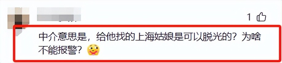 也有理智的网友指出:“中介意思是,给他找的上海姑娘是可以脱光的?为啥不能报警?”这话,说得在理。