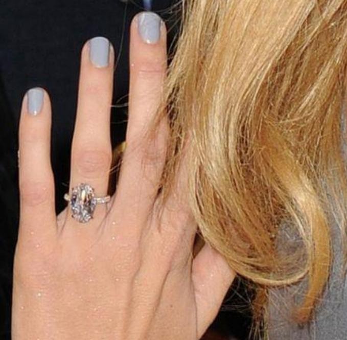 这枚戒指是布莱克·莱弗利在订婚时佩戴的一枚钻戒,银色的外观给人眼前一亮的感觉,外环十分光滑,戴在指尖非常柔和。在它的表面点缀了一颗椭圆形的粉色钻石,这样清新的颜色会使得整体搭配更加光彩夺目。这颗钻石的重量有12克拉,市场价已经达到了200万美元,钻石里面还设计了其他图案,看上去很有立体感,戴在指尖光芒四射。