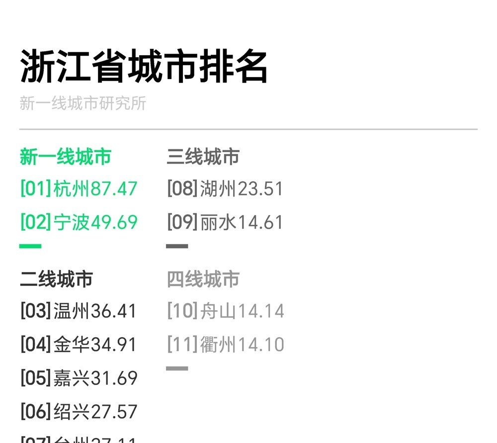 2024浙江省城市排名:宁波稳居第2,嘉兴领先绍兴,衢州垫底