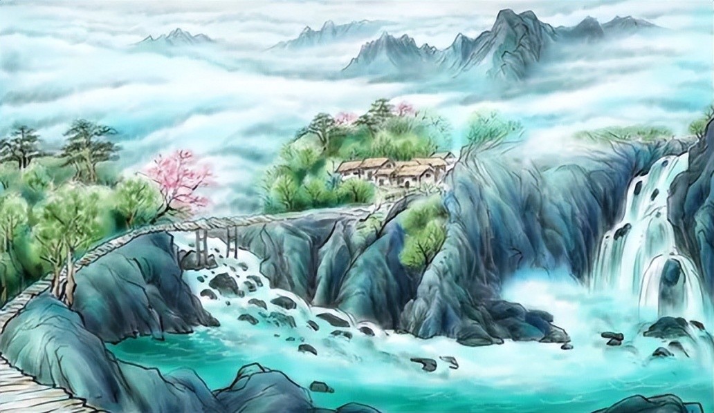 “映地为天色,飞空作雨声。”颔联是说,山泉倒映着天色,看上去水天一色;山崖上泉水飞空,落下似雨声作响。这是写“山泉之清湍”。