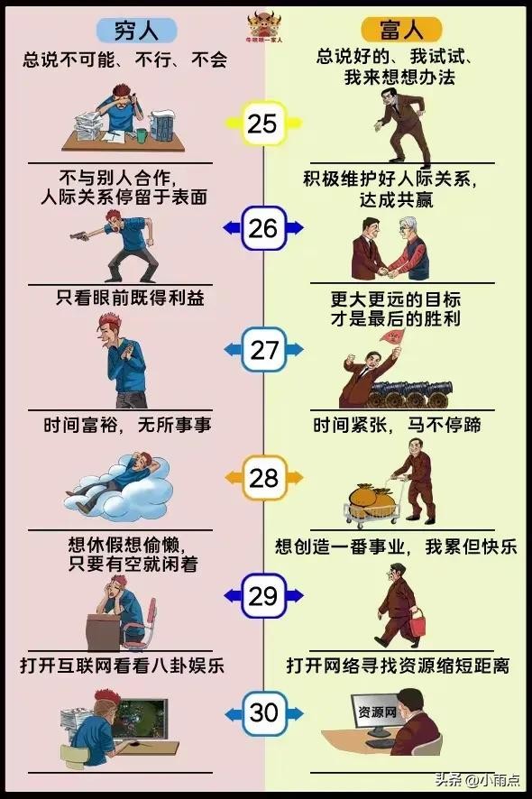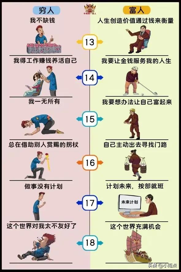 16. 职业规划:富人通常有明确的职业规划,穷人可能因缺乏指导而迷茫。