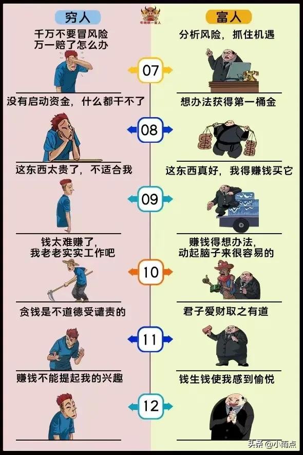 7. 学习意愿:富人通常更重视终身学习,穷人可能因资源限制而缺乏学习机会。