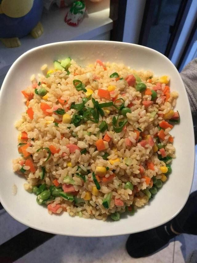 2、加入素菜翻炒时间控制在10—20秒之间,此时的素菜实则段生的!口感也是绝佳的!过早的加入素菜会大大影响炒饭的口感,特别是黄瓜、胡萝卜一类的。